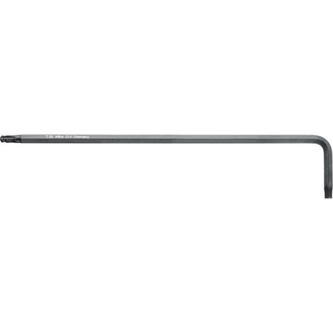 Clé coudée à tête sphérique TORX®, Dimensions : T 27, Longueur des branches 176 x 36 mm – Traité au phosphate de manganèse – Acier au chrome-vanadium – La tête sphérique permet un vissage jusqu’à un angle de 25° Avantage: avec profil à rallonge TORX® derrière la tête sphérique.