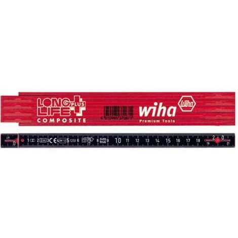 - Point fort : Fixation robuste des embouts mĂ©talliques au niveau des extrĂ©mitĂ©s des branches pour ne pas les perdre. Lecture des deux cĂ´tĂ©s grâce Ă une Ă©chelle graduĂ©e inversĂ©e (recto verso). Articulation : Articulation sans jeu, inusable et insensible Ă la saletĂ© avec lame de ressort pour une tension Ă©levĂ©e rĂ©gulière. Verrouillage Ă 90° et 180° de toutes les articulations. PrĂ©cision : ConformitĂ© CE, norme UE classe de prĂ©cision II. MatĂ©riau : deux couches de finition en fibres de verre orientĂ©es longitudinalement absorbent les forces de flexion et assurent ainsi une rigiditĂ© plus Ă©levĂ©e que pour les mètres en bois. RĂ©siste aux produits chimiques et ne gonfle pas au contact de l’eau. Graduations : version rouge/noir : graduations blanches profondĂ©ment marquĂ©es par pas de 1 mm, dizaines marquĂ©es en blanc , version gris/blanc : graduations noires profondĂ©ment marquĂ©es par pas de 1 mm, dizaines marquĂ©es en rouge.