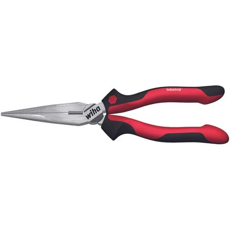 Cette pince à bec long industrial de Wiha conviennent pour saisir et maintenir des fils et câbles souples et durs. Vous pouvez également couper des câbles souples et durs avec ces pinces à bec long. Les pinces à bec effilé ont un tranchant extra long et des mâchoires partiellement dentelées. Utilisez de préférence ces pinces pour les travaux mécaniques. La poignée est en plastique et est confortable à utiliser. La longueur totale de la pince est de 20 cm et son ouverture maximale est de 60 mm. Enfin, ces pinces sont fabriquées en acier de haute qualité et trempées par induction à 64 HRC.