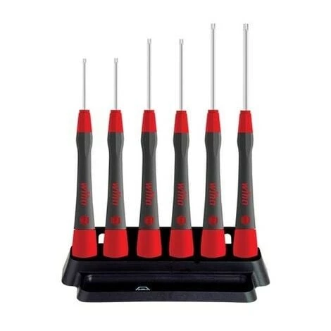 - The challenge in precision screw fastenings is to work meticulously and carefully without damaging the work piece. Thanks to their long, slim handles and quick-turning zone, Wiha PicoFinish® fine screwdrivers are ideal for delicate and high-precision tasks in precision mechanics as well as for hobbyists and model building. Its ergonomic handle design with a soft zone makes it comfortable to use. The smooth-running rotating cap allows users to turn the screwdriver quickly and sensitively. The printed screwdriver symbols on the rotating cap make it easier to select the right screwdriver profile. The set contains 6 PicoFinish® fine screwdrivers and a holder. The holder can be used to neatly store the fine screwdrivers at workstations.