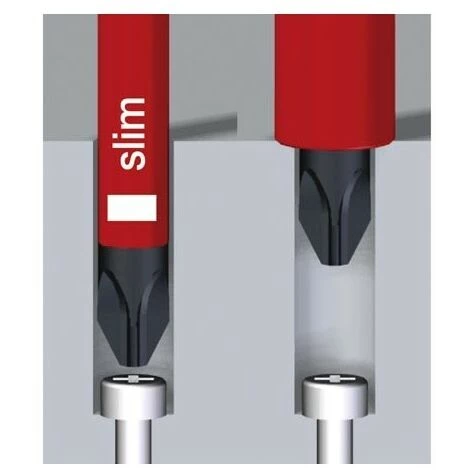 Pour vis de bornes (à fente/ Phillips). Double isolation contrôlée individuellement, 1.000 V AC, contrôlée VDE et GS.